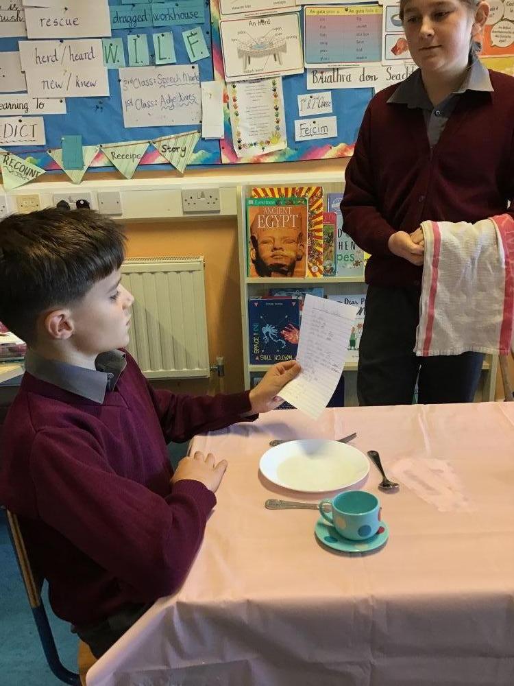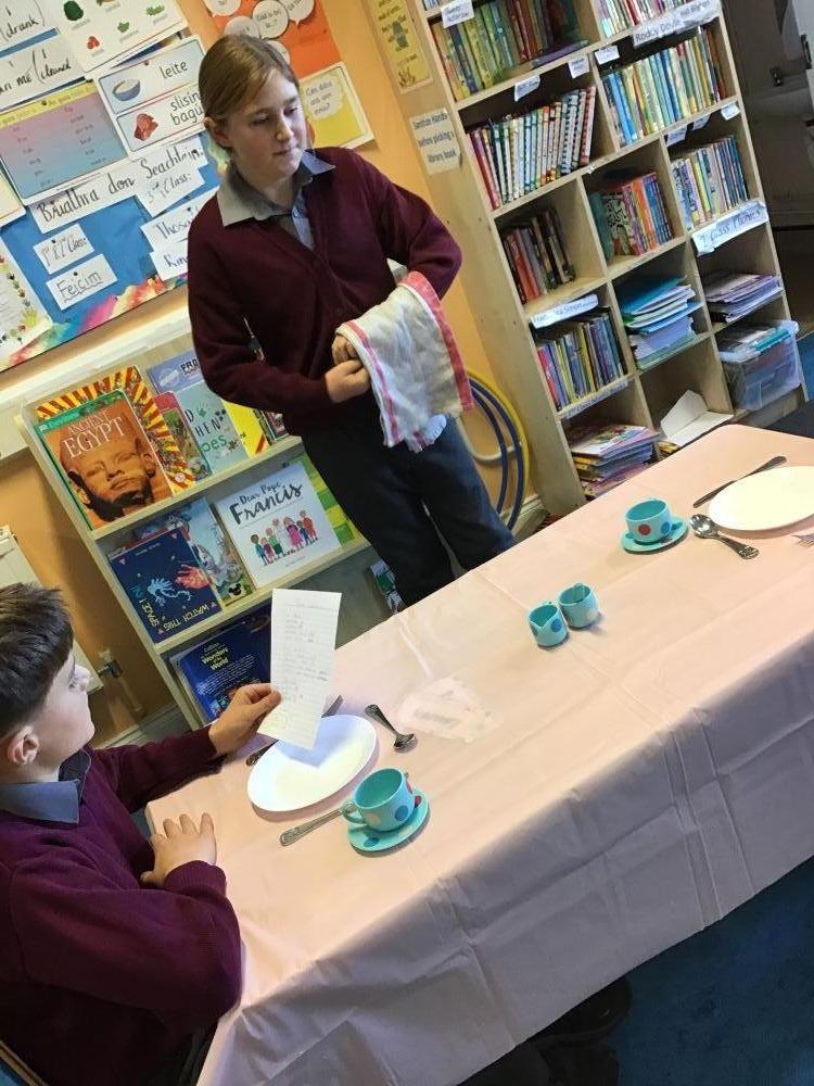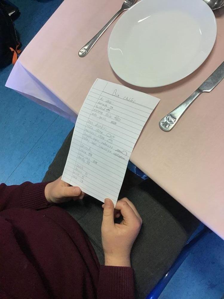 Mr. Forde's students were enjoying rólimirt activities in Irish this week. This week they were learning about food and enjoyed learning how to order food in a restaurant as gaeilge!